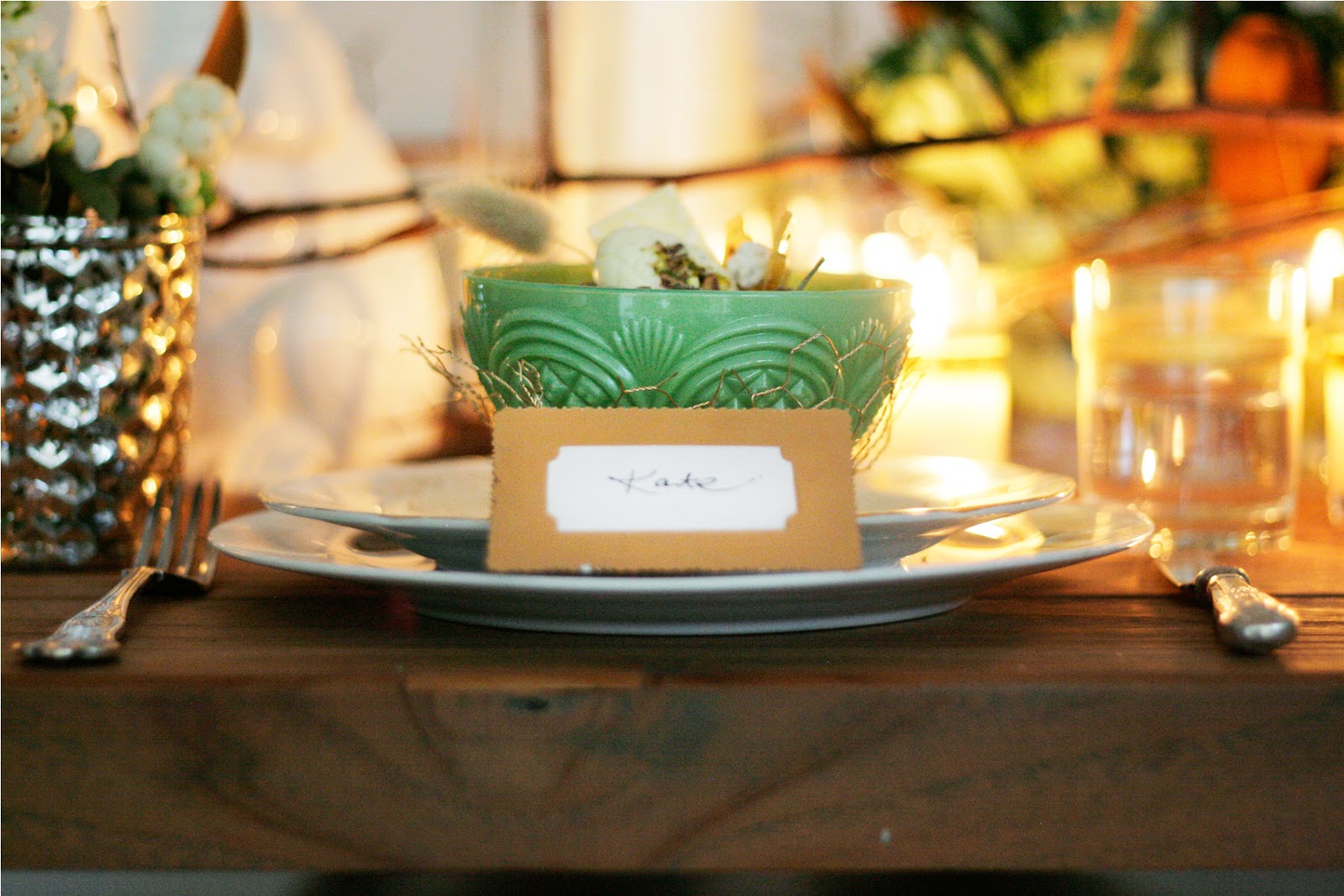 My place cards were sprayed in metallic gold and the names were handwritten for that personal touch.