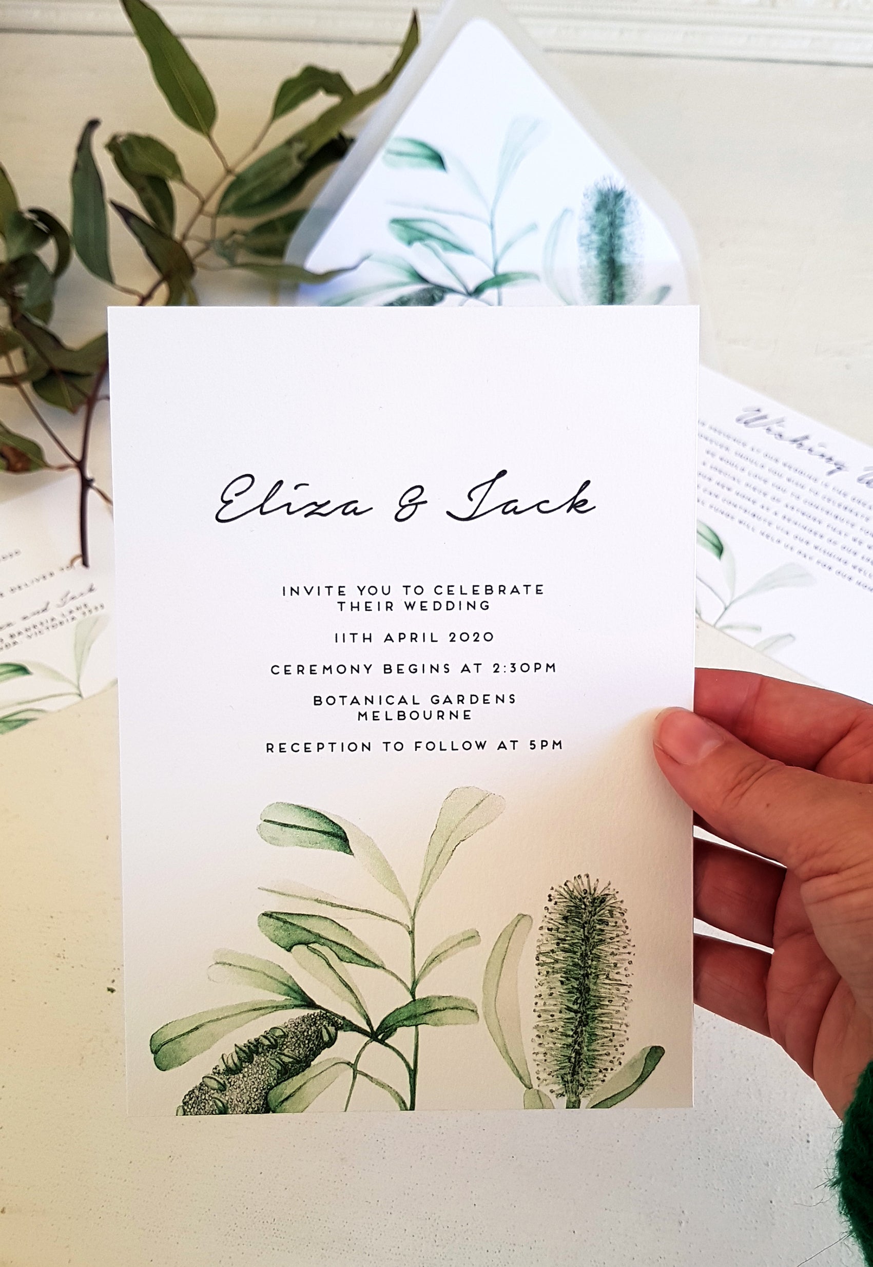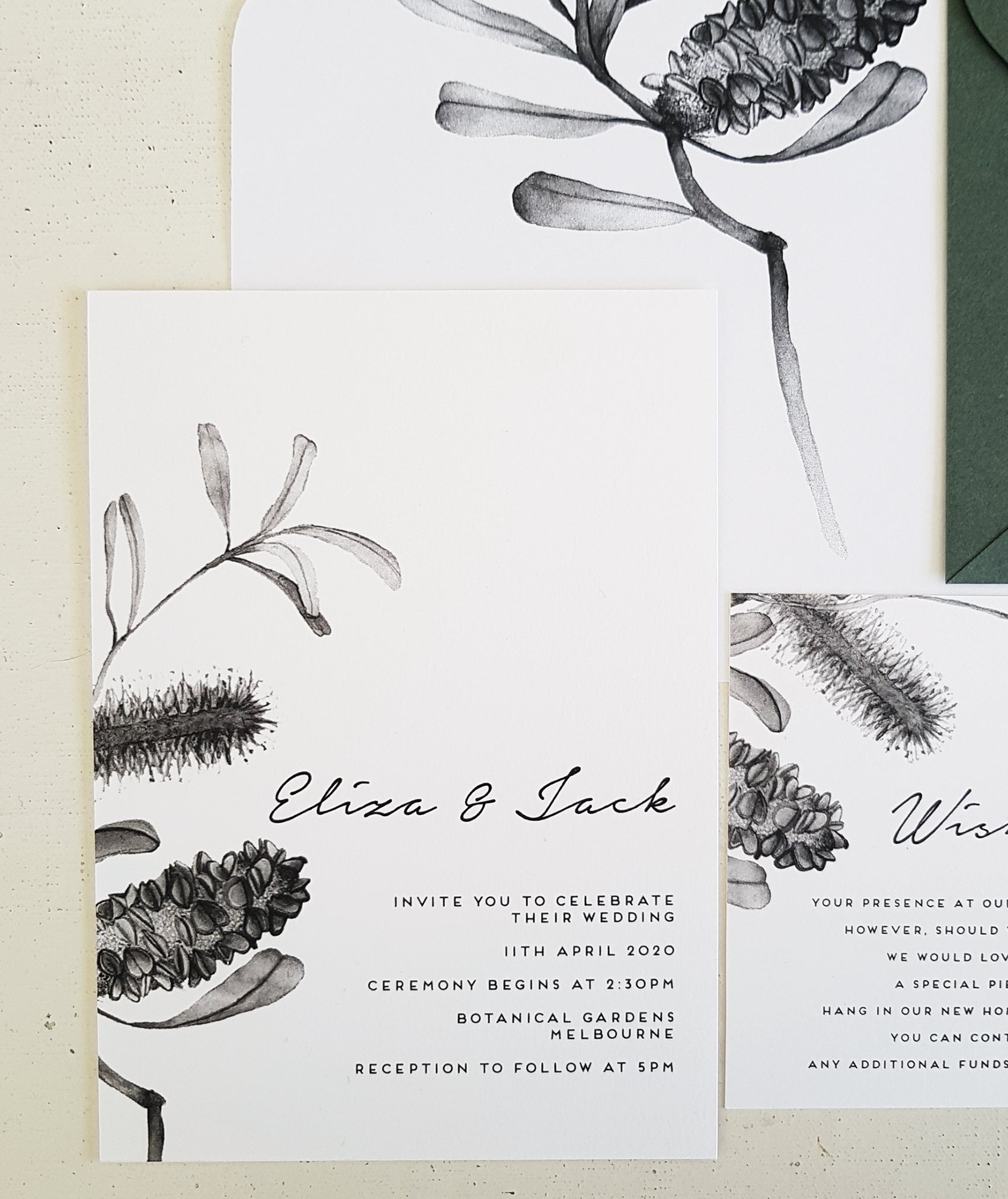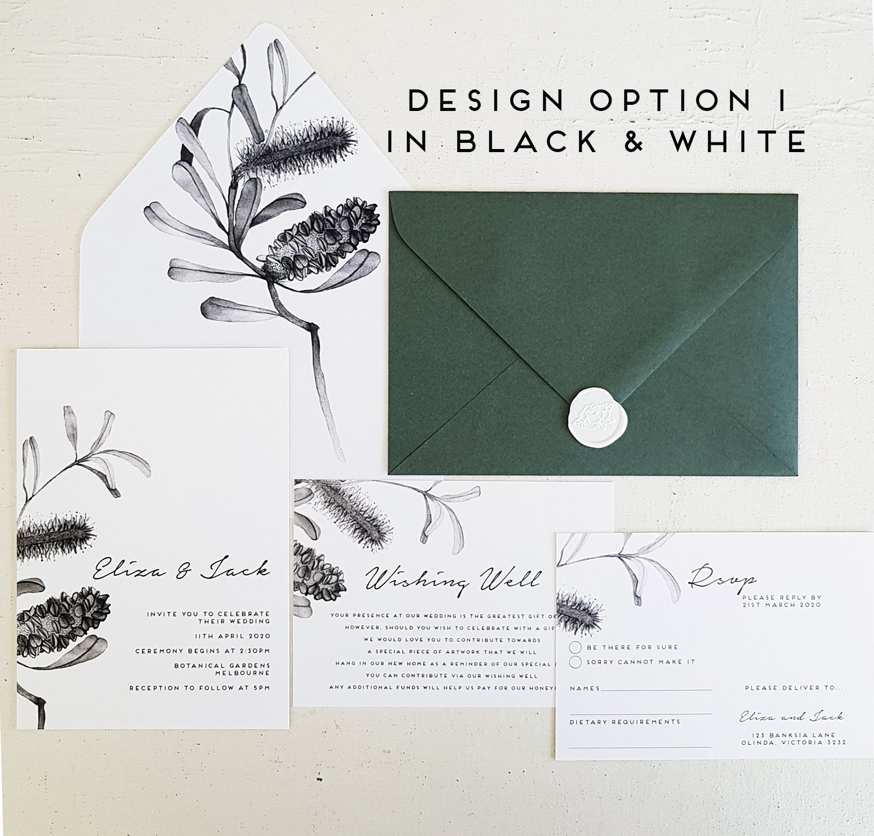 BANKSIA/Wedding Invites/GREEN or BLACK & WHITE
