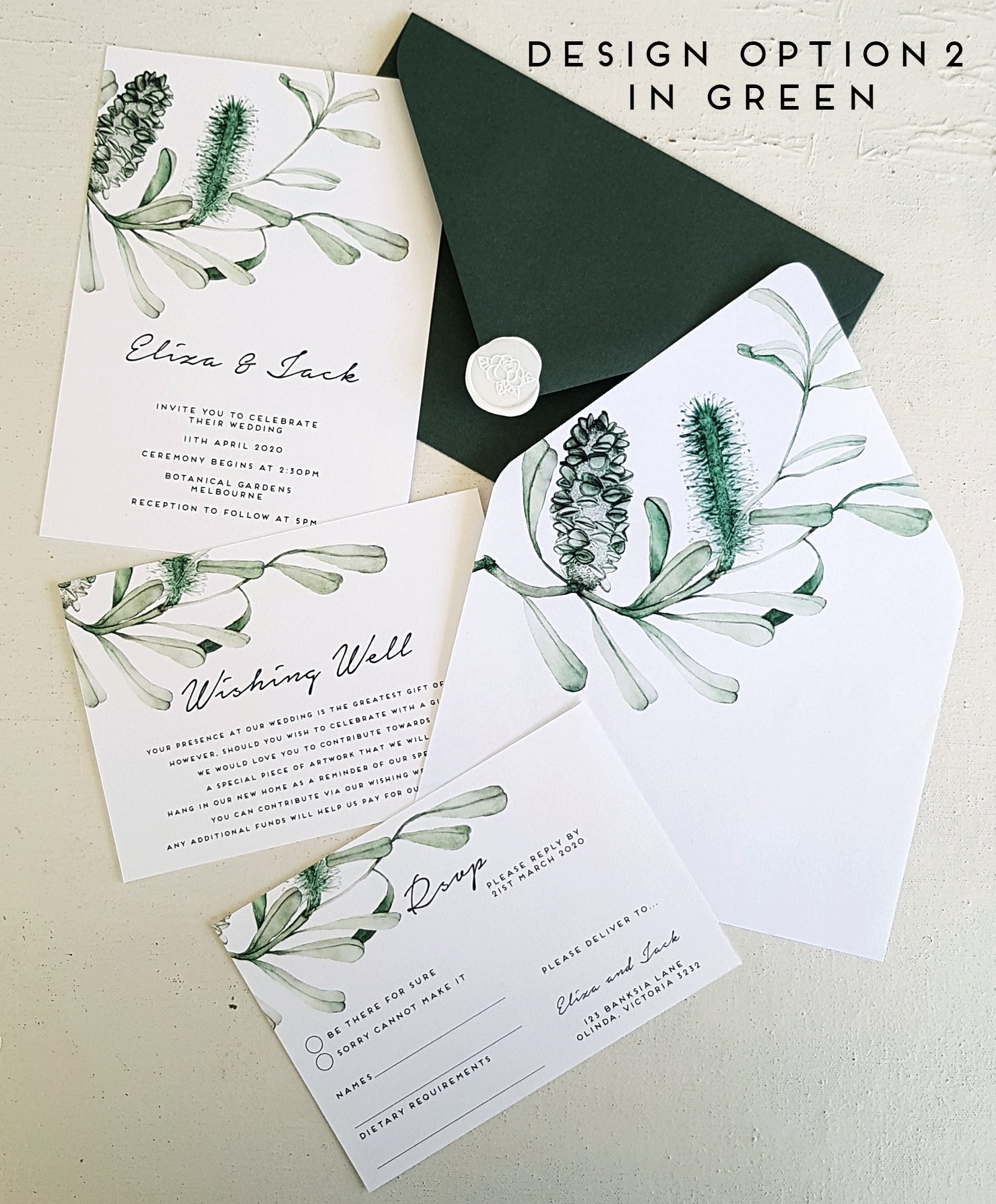 BANKSIA Invite DESIGN in GREEN or BLACK & WHITE
