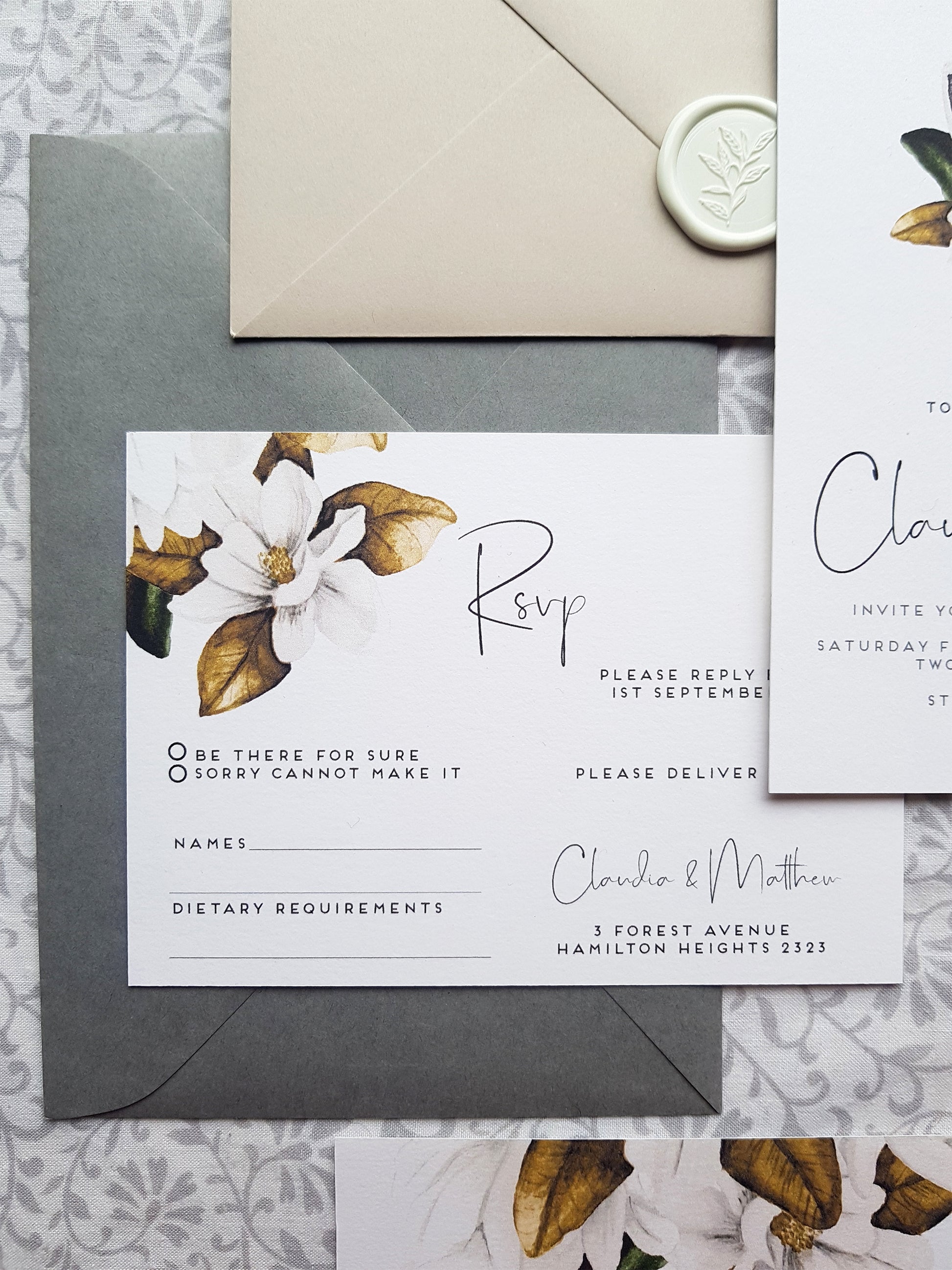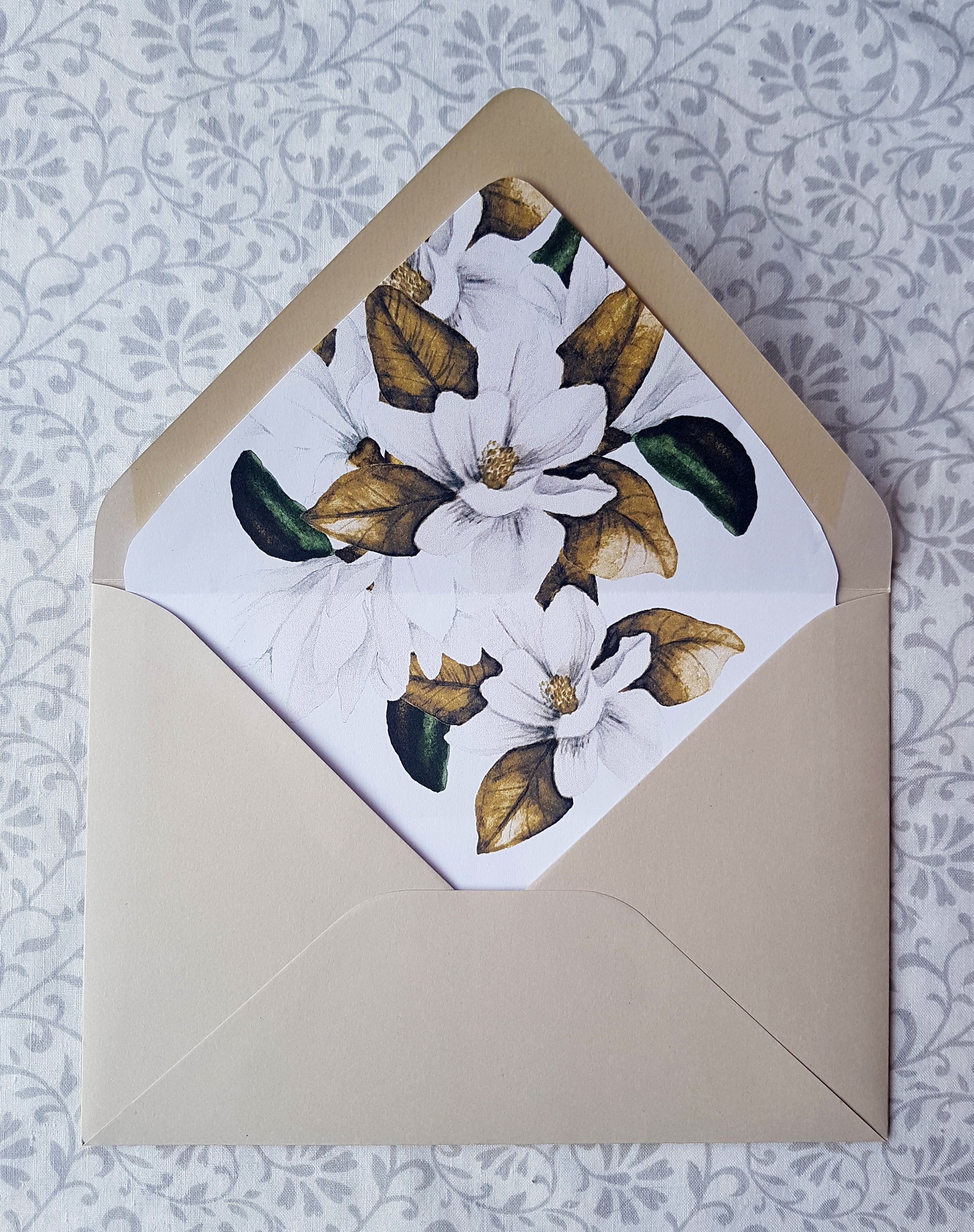 -Double Sided Design with Magnolia art on the reverse side (see 1st and 2nd image) Perfect for your guests to keep and frame!