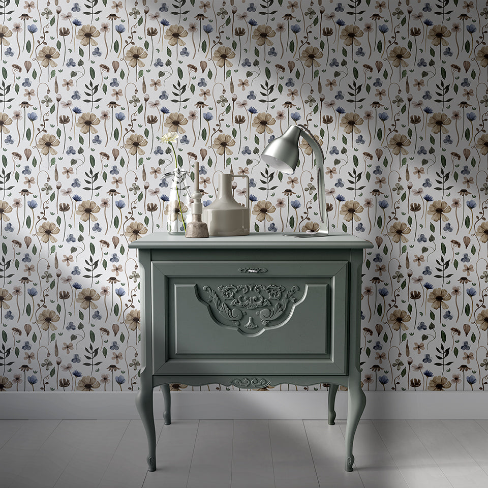 Pressed flowers, inspired by the real thing but painted instead, this is a soft and delicate design perfect in a country setting.
