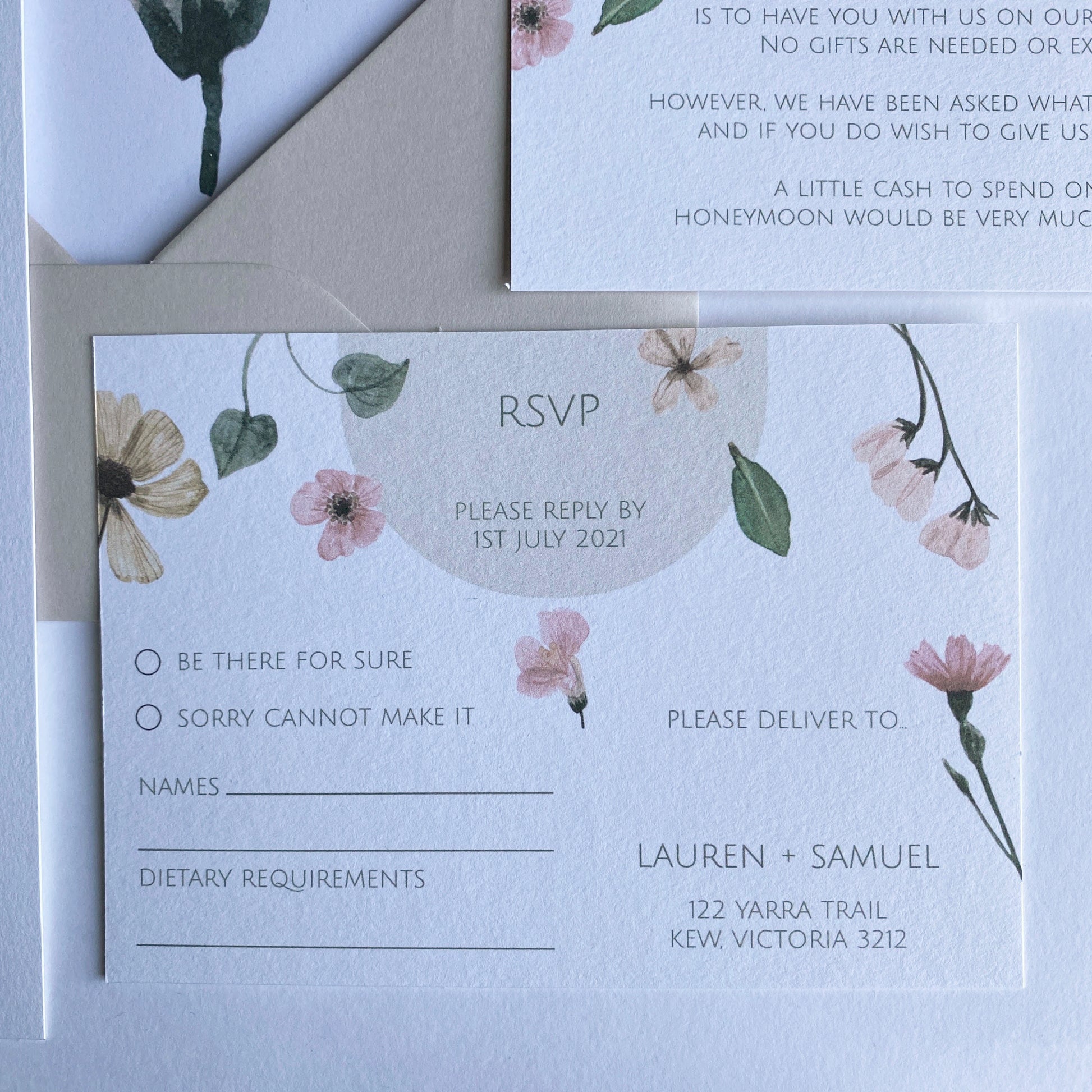 If you love this design and just have to have it, but don't have the time to print yourself, leave all the printing and assembling up to me! I work very closely with a wonderful printer who specialises in wedding print and provides beautiful paper and envelopes not often found easily elsewhere.