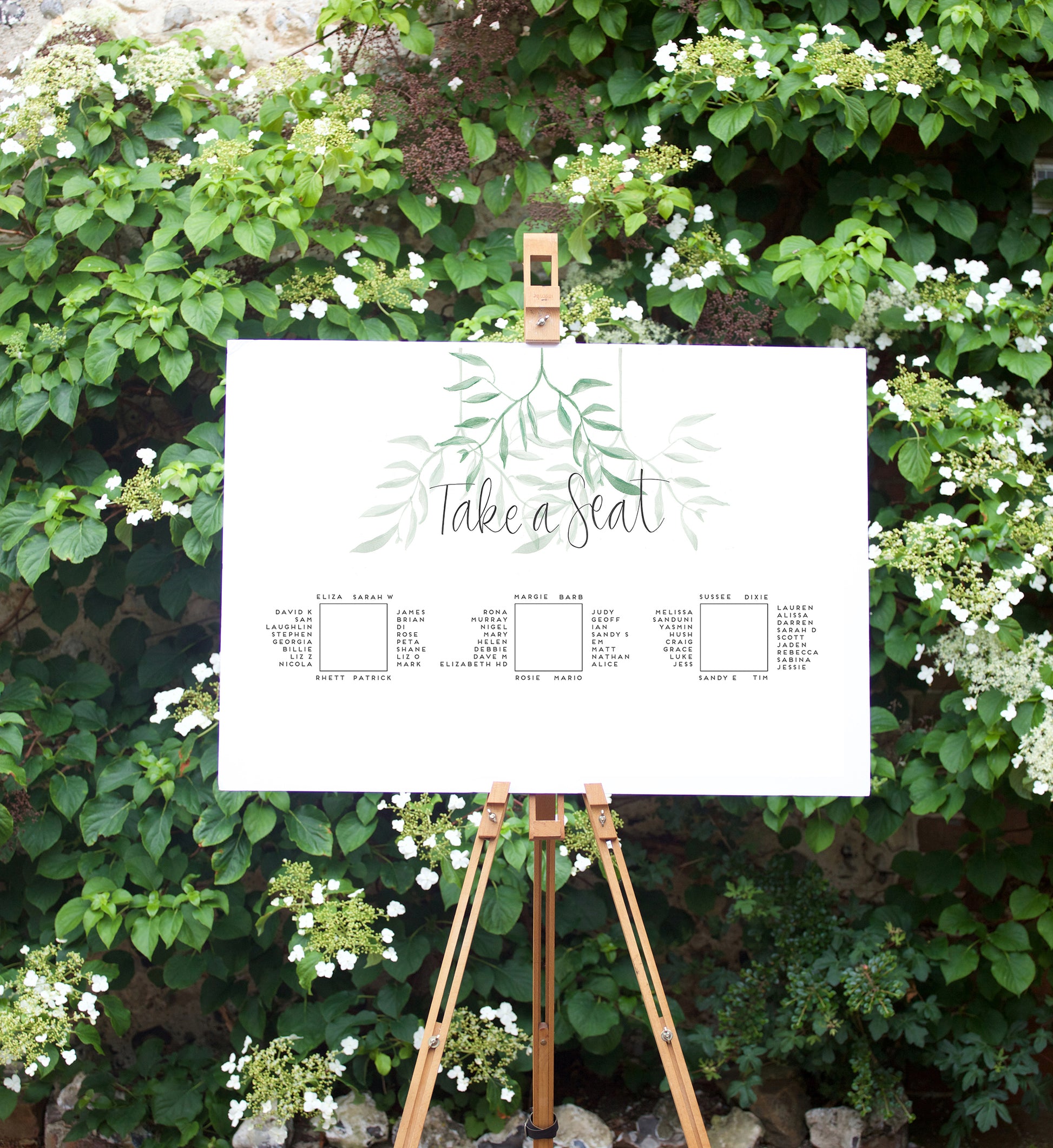 The title is hand written calligraphy style and can say...'Take a Seat', or 'Please Find Your Seat'.